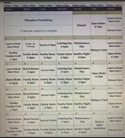 Important Note: The rink is open even when the shack is closed, but please stay off the ice if maintenance and flooding are taking place.