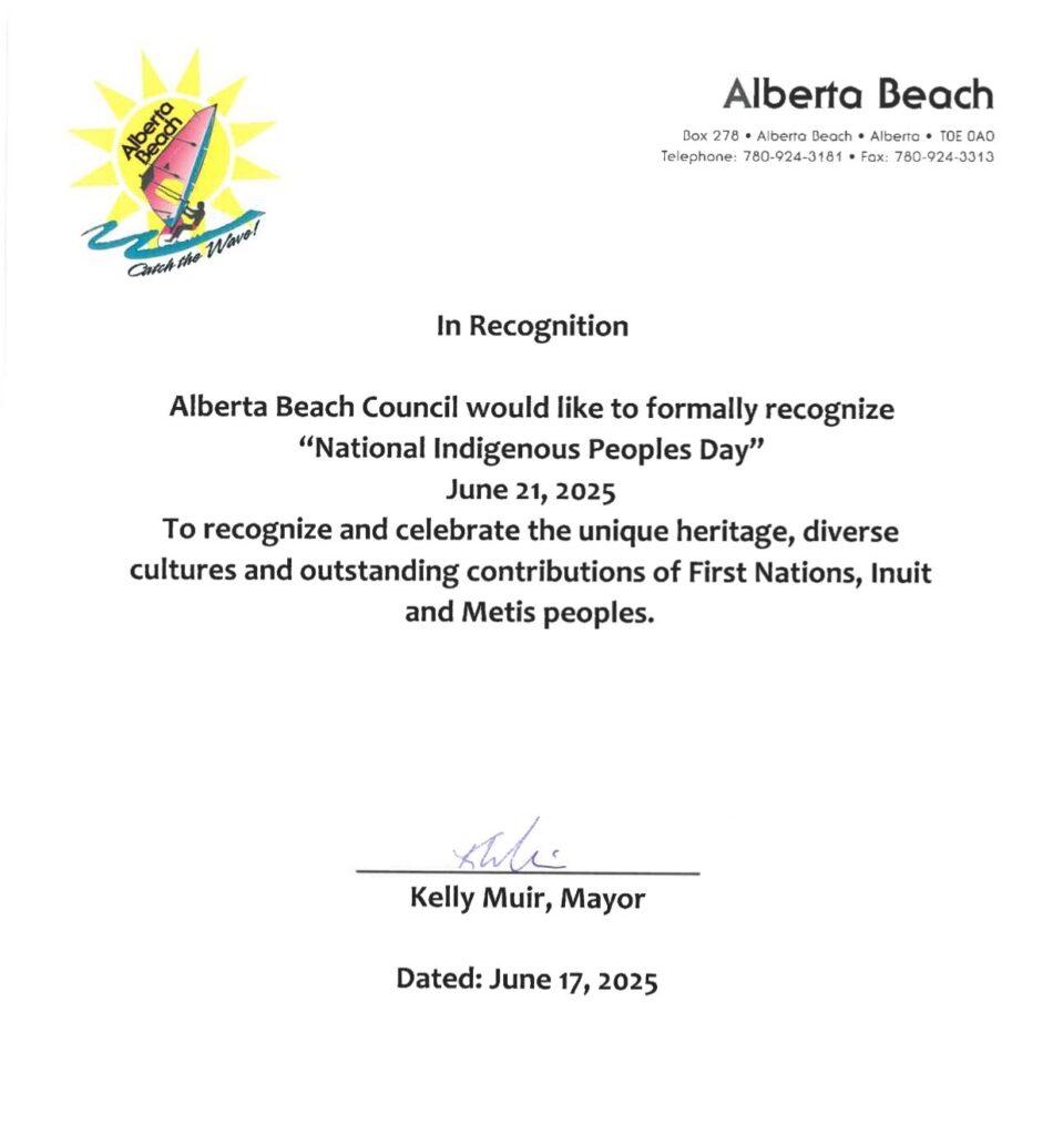 NOTICE IS HEREBY GIVEN that at the conclusion of Nomination Day, held on September 22, 2025, for Alberta Beach’s 2025 General Municipal Election, the following nominations were accepted for the five (5) vacancies on Alberta Beach’s Municipal Council:
