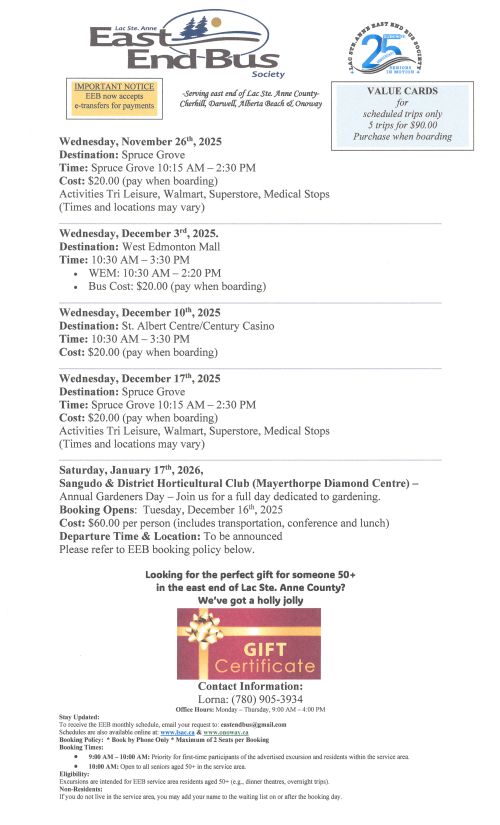 Please contact Lac Ste. Anne County (LSAC) to access these services or if you have any questions.