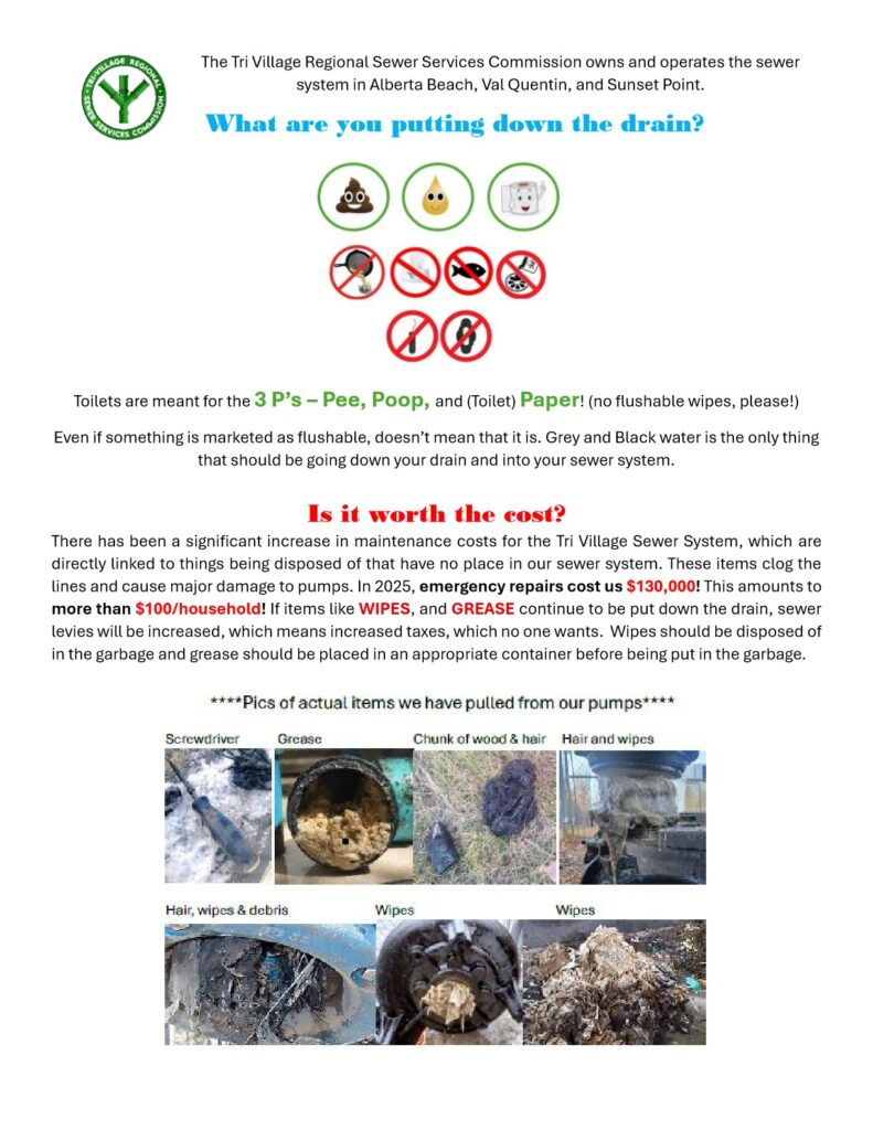 If you have any questions or concerns about the upcoming work or how it might affect you, please contact the Village Office at 780-924-3181.
