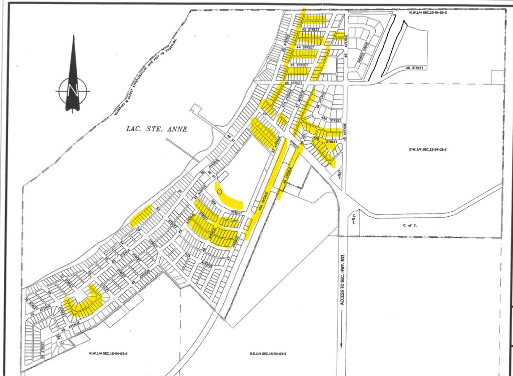 If your residence is in the affected highlighted area on the maps below your Waste and Organics collection has been changed to front curb pick-up. If you notice your cart isn’t where you placed it out for collection, it has been moved to the front curb. Your residence has a small alleyway and to avoid unnecessary resident property damage in the alleyway your waste and organics cart collection has been changed to front curb pick-up. Please take note of where you find your cart(s). This is where they will be picked up from now on. Affected residences will also be receiving a flyer with details. If you have any questions, please contact the Village Office at 780-924-3181.